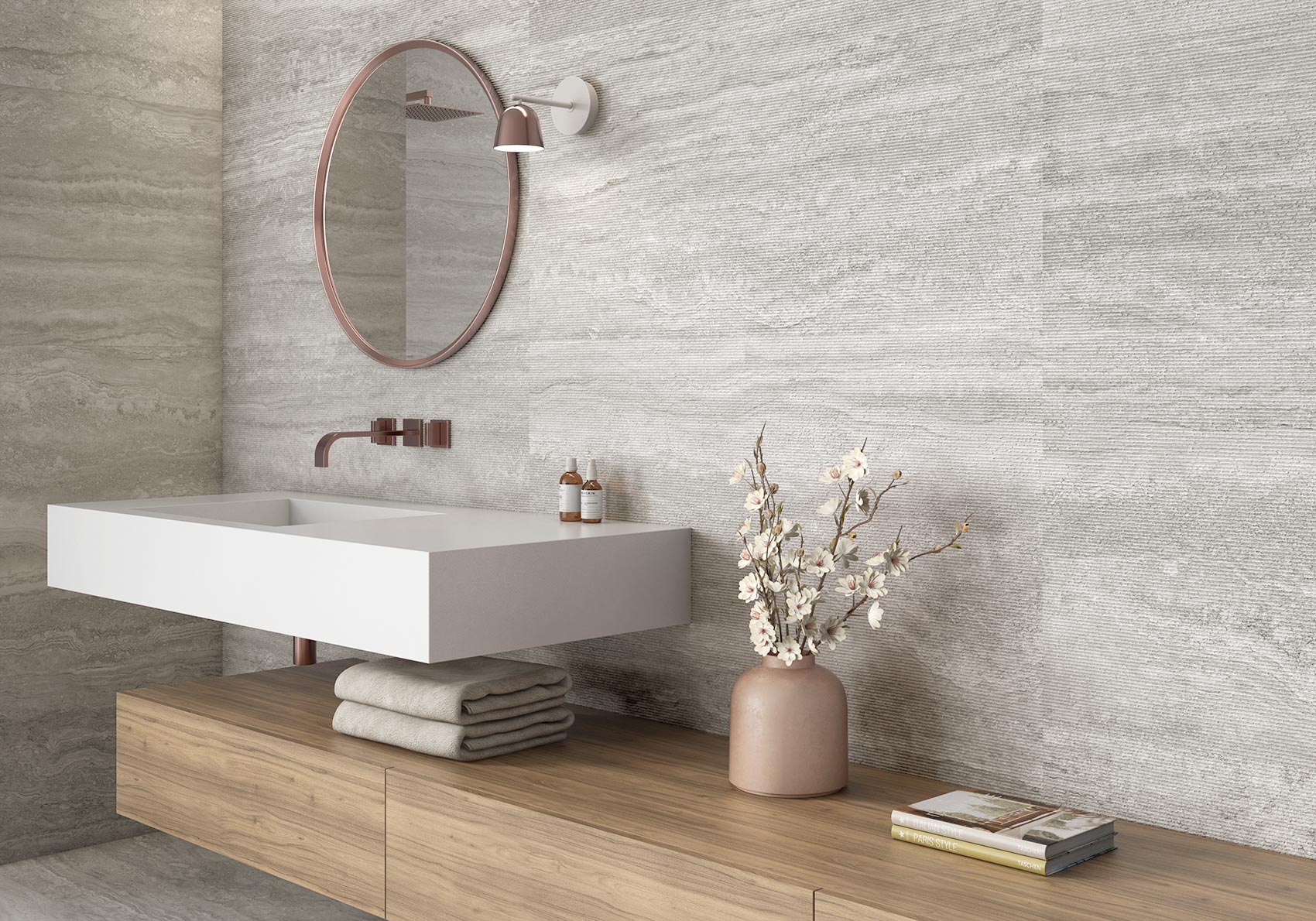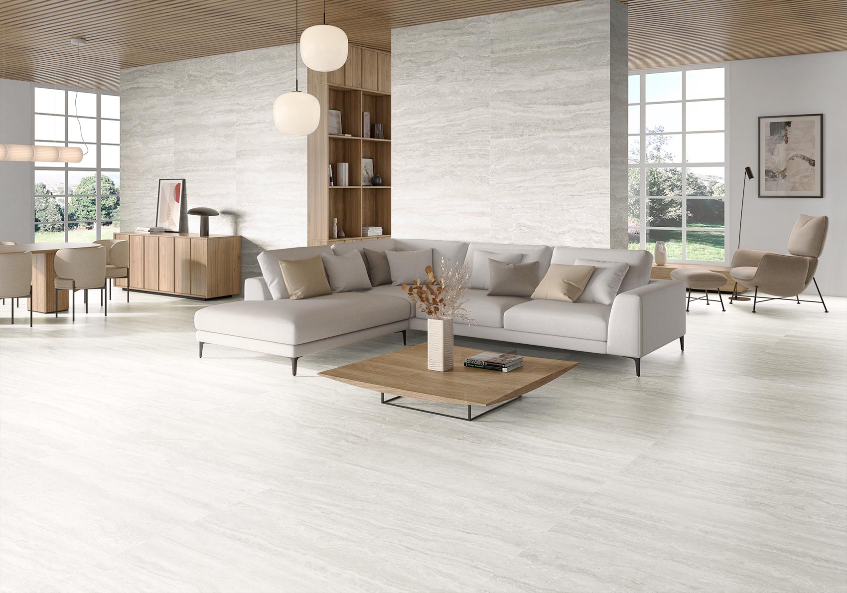 This collection is available in 59.5 x 119.2. Additionally, it comes in three colours: Cream, Ivory and Silver, offering a wide range of combinations and styles. These neutral and sophisticated shades ensure seamless integration into any setting, whether it’s a modern loft or a cosy traditional home.